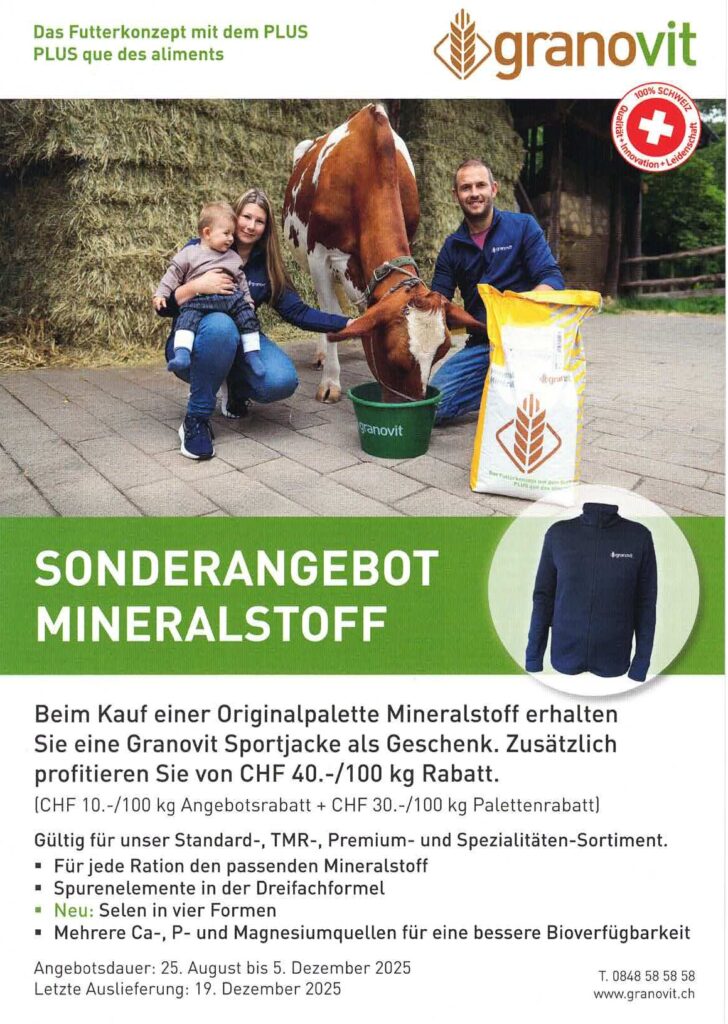 Jetzt SCHWEIZER Futterbau-Hausmischungen bestellen und profitieren: Auf alle Lieferungen bis 15. Juni 2024 kommen Sie in den Genuss von 7% Zusatzrabatt (nur auf Hausmischungen).